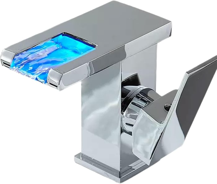 【Hydropower Faucet - LED 3 Color Changing】3 colors of bathroom sink faucet change according to water temperature:When the water temperature is less than or equal to 80°F (26.7°C), the light color is blue. When the water temperature is between 80 ° C (26.7°C) and 110°F (43.3°C), the light color is green. When the water temperature is greater than 110°F (43.3°C), the light color is red. It provides additional relaxation and visual pleasure while avoiding burns.